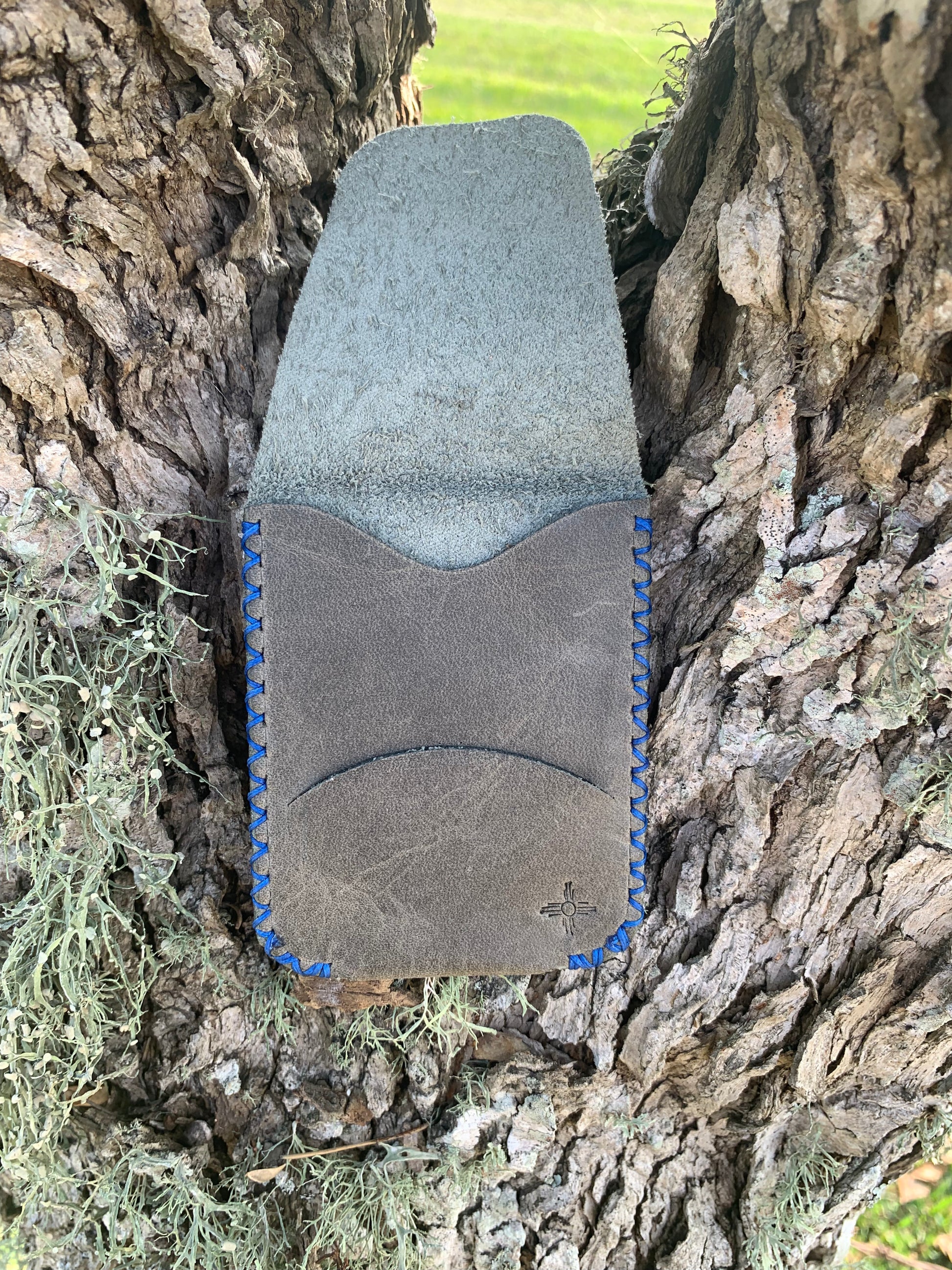 Two pocket card wallet with flap. This slim front pocket wallet and easily carry 6-8 cards and a few bills.